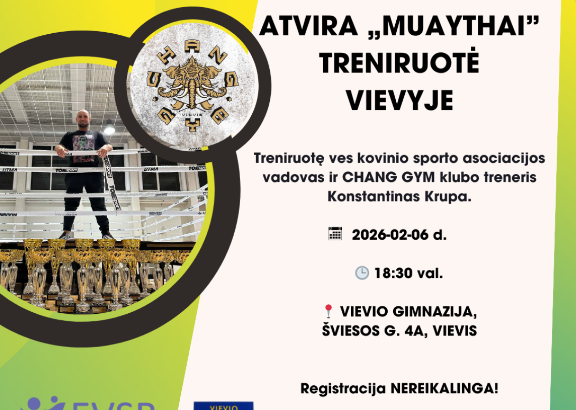 Kviečiame į atvirą „MUAYTHAI” treniruotę Vievyje, kurią ves kovinio sporto asociacijos vadovas ir CHANG GYM klubo treneris Konstantinas Krupa!!