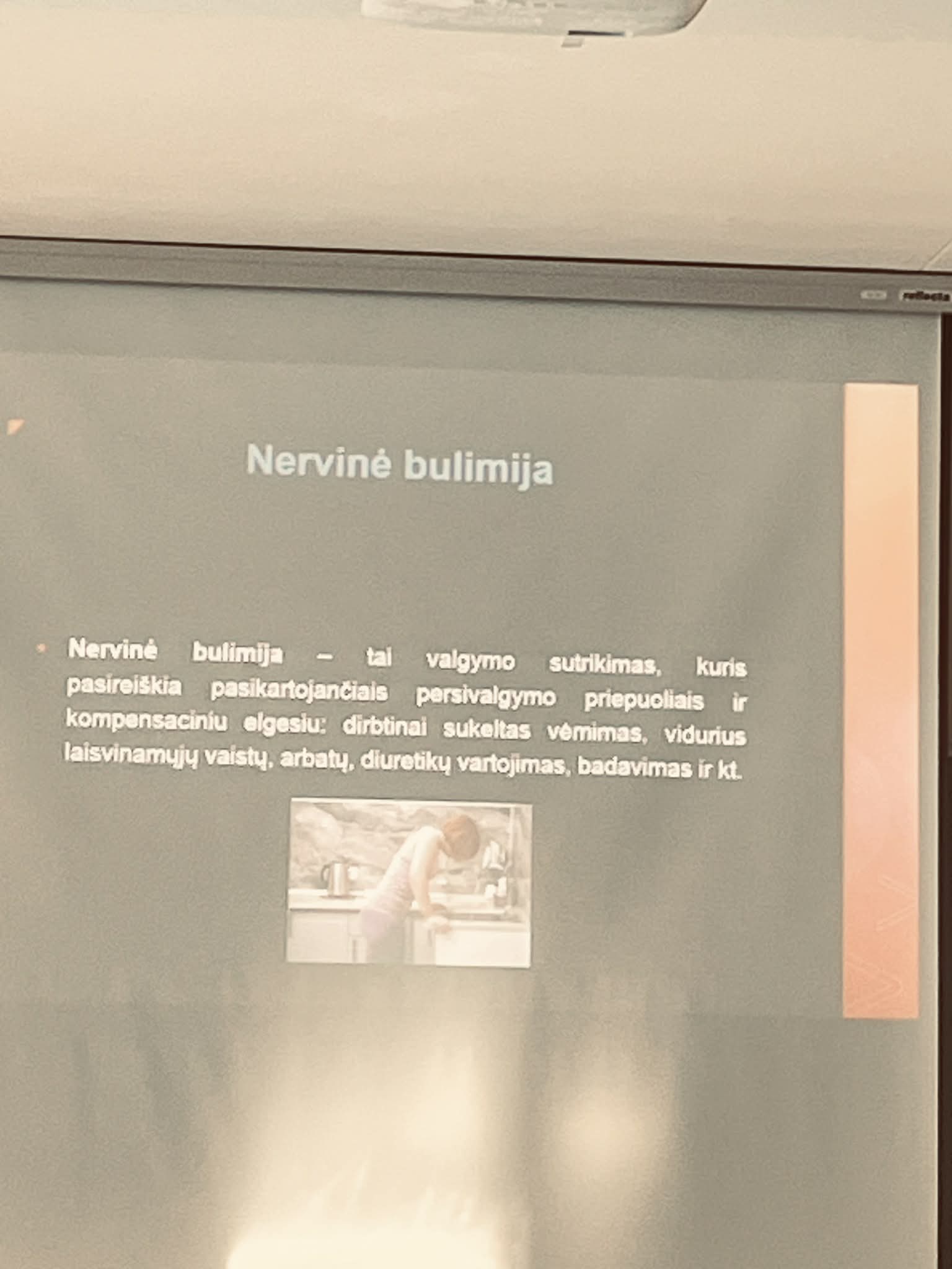Užsiėmimą vedė psichologė Oksana Apanavičienė ir visuomenės sveikatos specialistė Rūta Zacharovienė. Psichologė Oksana Apanavičienė pristatė mitybos sutrikimus iš psichologinės pusės – aptarė emocinius sunkumus, savivertės problemas, socialinių tinklų įtaką bei pagalbos svarbą pastebėjus pirmuosius sutrikimų požymius. Visuomenės sveikatos specialistė Rūta Zacharovienė supažindino mokinius su mitybos sutrikimų poveikiu fizinei sveikatai, organizmo pokyčiais bei sveikos mitybos ir prevencijos svarba.