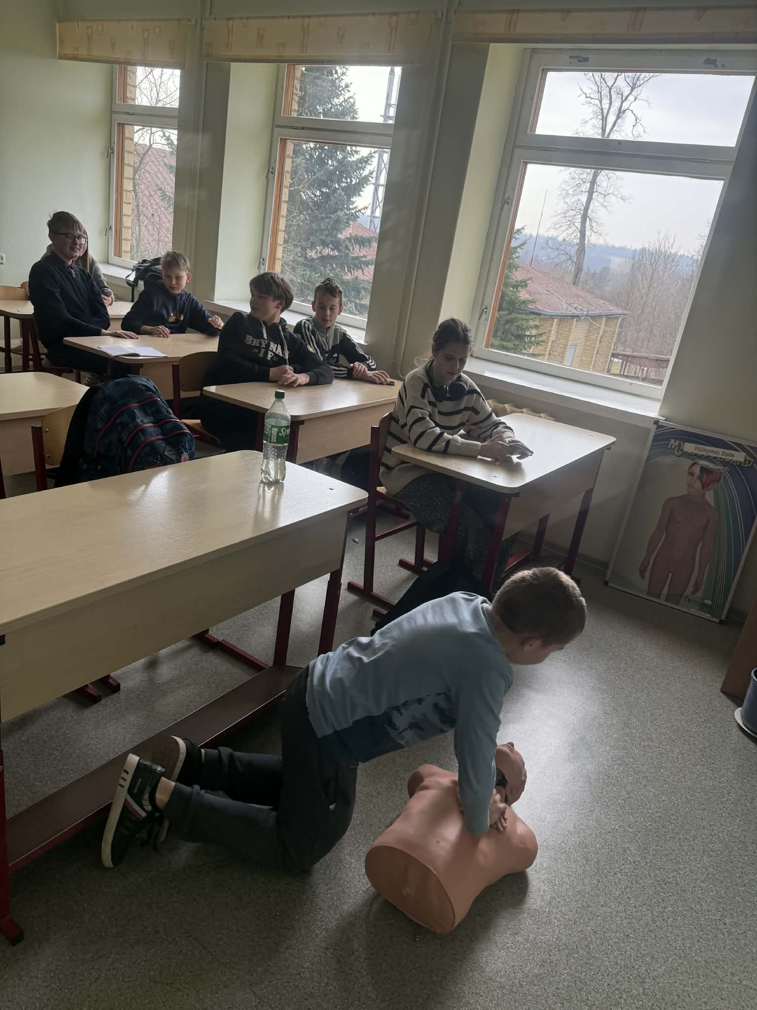 Praktinės užduotys leido mokiniams išbandyti gaivinimo veiksmus ant specialaus manekeno ir suprasti, kaip svarbu veikti greitai ir užtikrintai. Taip pat buvo aptarta, kaip suteikti pagalbą įvykus kaulų lūžiams. Mokiniai sužinojo, kaip atpažinti galimą lūžį, kaip imobilizuoti sužeistą galūnę ir kodėl svarbu jos nejudinti iki atvykstant medikams. Dalyviai mokėsi atskirti pavojingą kraujavimą, taisyklingai spausti žaizdą, naudoti tvarstį ar spaudžiamąjį raištį. Buvo akcentuota, kad laiku suteikta pirmoji pagalba gali išgelbėti gyvybę.