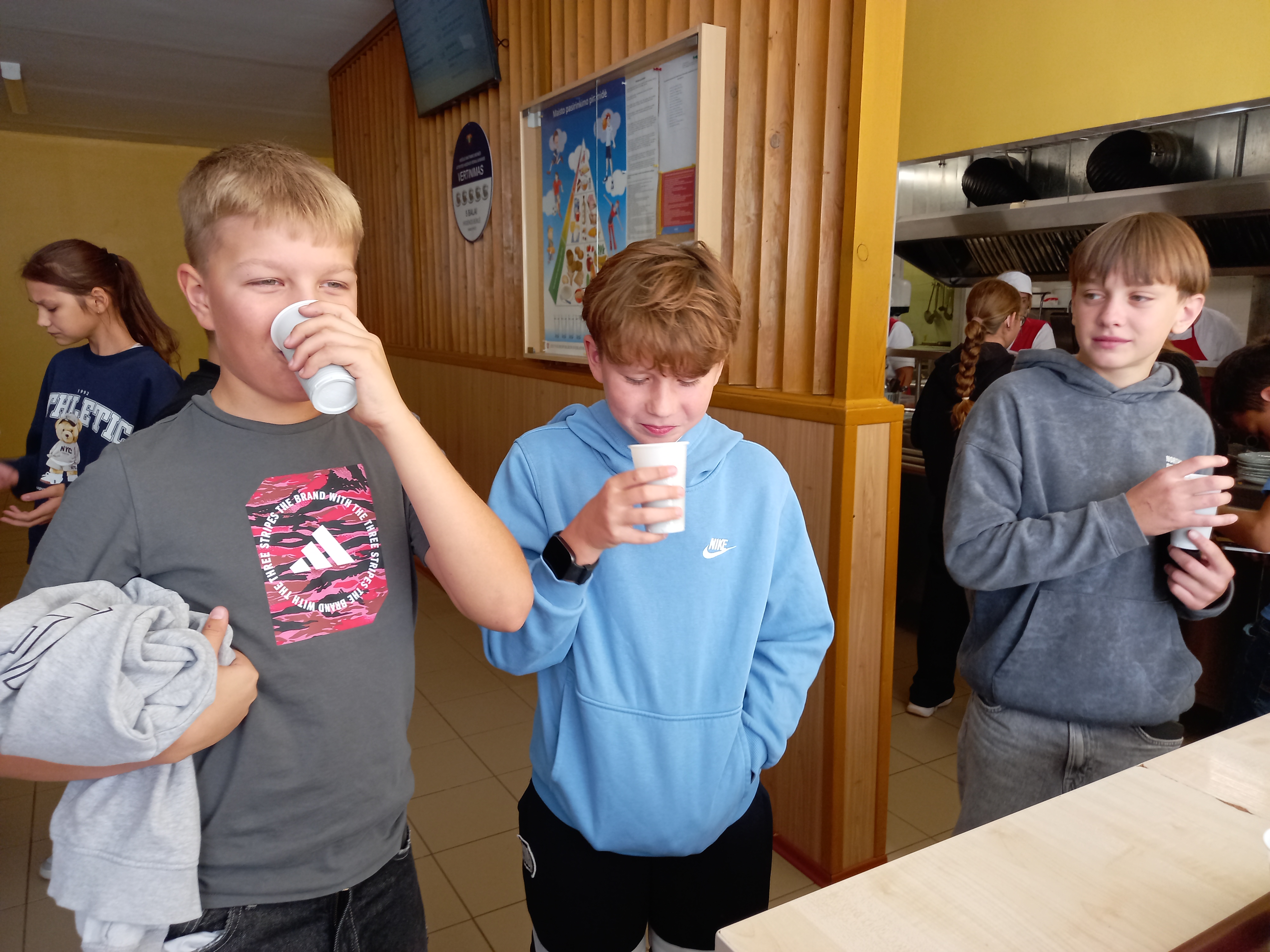 2025 10 15Vievio gimnazijoje toliau sėkmingai įgyvendinamas projektas „Mokinių sveiko gyvenimo būdo ugdymas“. Projekto autorė – visuomenės sveikatos specialistė Violeta Kerševičienė. Tikslai – padėti mokiniams išsaugoti ir stiprinti sveikatą, skatinant aktyvų gyvenimo būdą vaikystės ir paauglystės laikotarpiu; atsižvelgiant į mokinių pomėgius bei poreikius, formuoti sveikatai palankios mitybos įpročius. Kad mokinių organizmai būtų kiek įmanoma daugiau aprūpinti gyvybiškai būtinomis maistinėmis medžiagomis, rugsėjo-spalio mėnesį gimnazijos valgykloje buvo gaminami vaisių kokteiliai. Taip pat įvairiausių vaisių kokteilius technologijų pamokų metu (mokytoja Danguolė Šumskienė) kruopščiai gamino ir patys mokiniai. Jie išbandė pačių surastus ar mokytojos pasiūlytus receptus, vaišinosi sveikais ir skaniais gėrimais bei įvertino skaniausiai pagaminti pavykusius. Be to, mokiniai pagilino žinias apie vaisių ir daržovių vartojimo rekomendacijas: