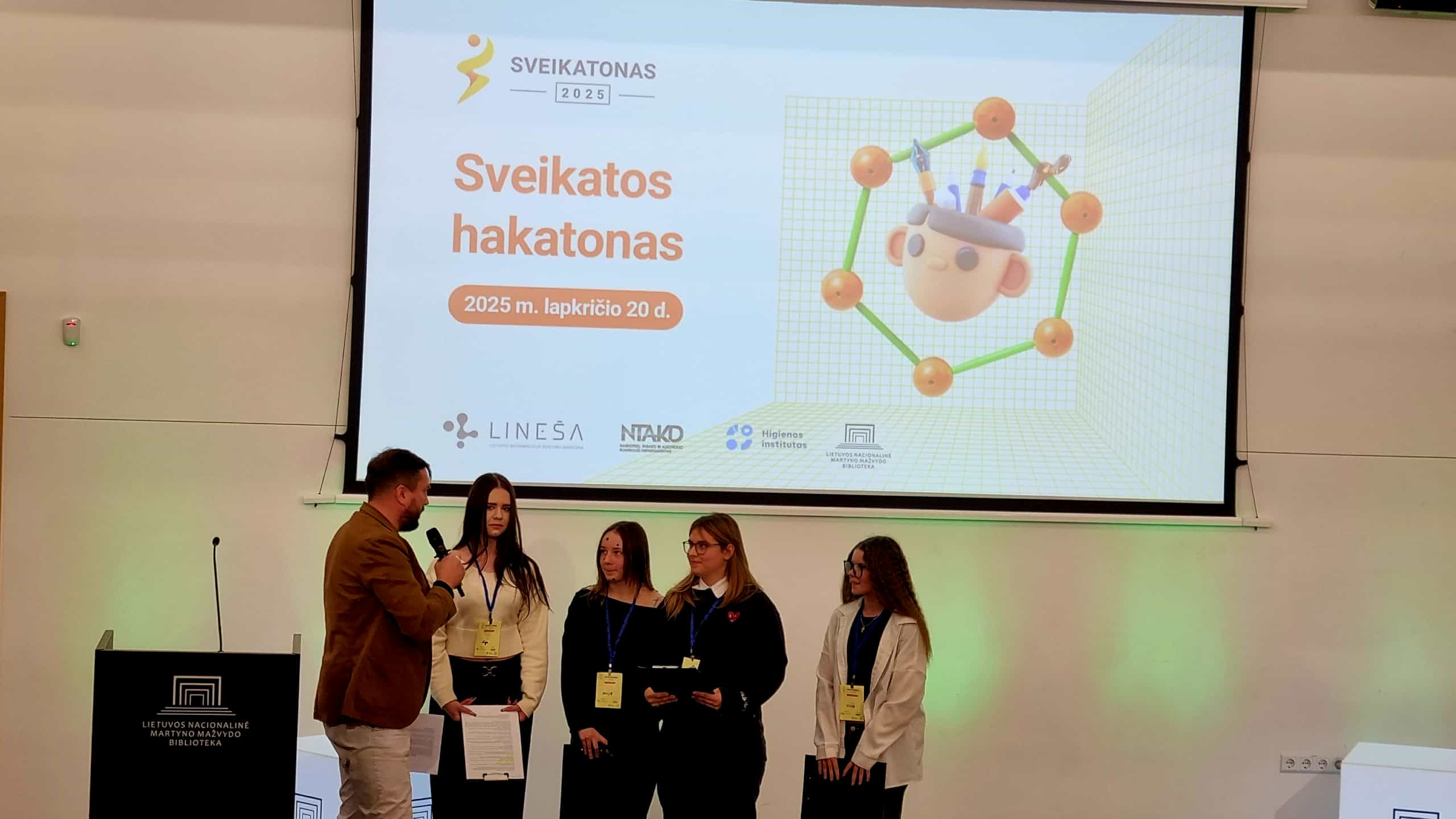 2025 11 21Šių metų Hakatone, kurį organizavo Lietuvos neformaliojo švietimo agentūra (LINEŠA) kartu su partneriais – Narkotikų, tabako ir alkoholio kontrolės departamentu, Higienos institutu ir Lietuvos nacionaline Martyno Mažvydo biblioteka – mūsų komanda pristatė unikalų sprendimą: virtualaus pabėgimo kambario edukaciją „Ištrūkti iš priklausomybės“.