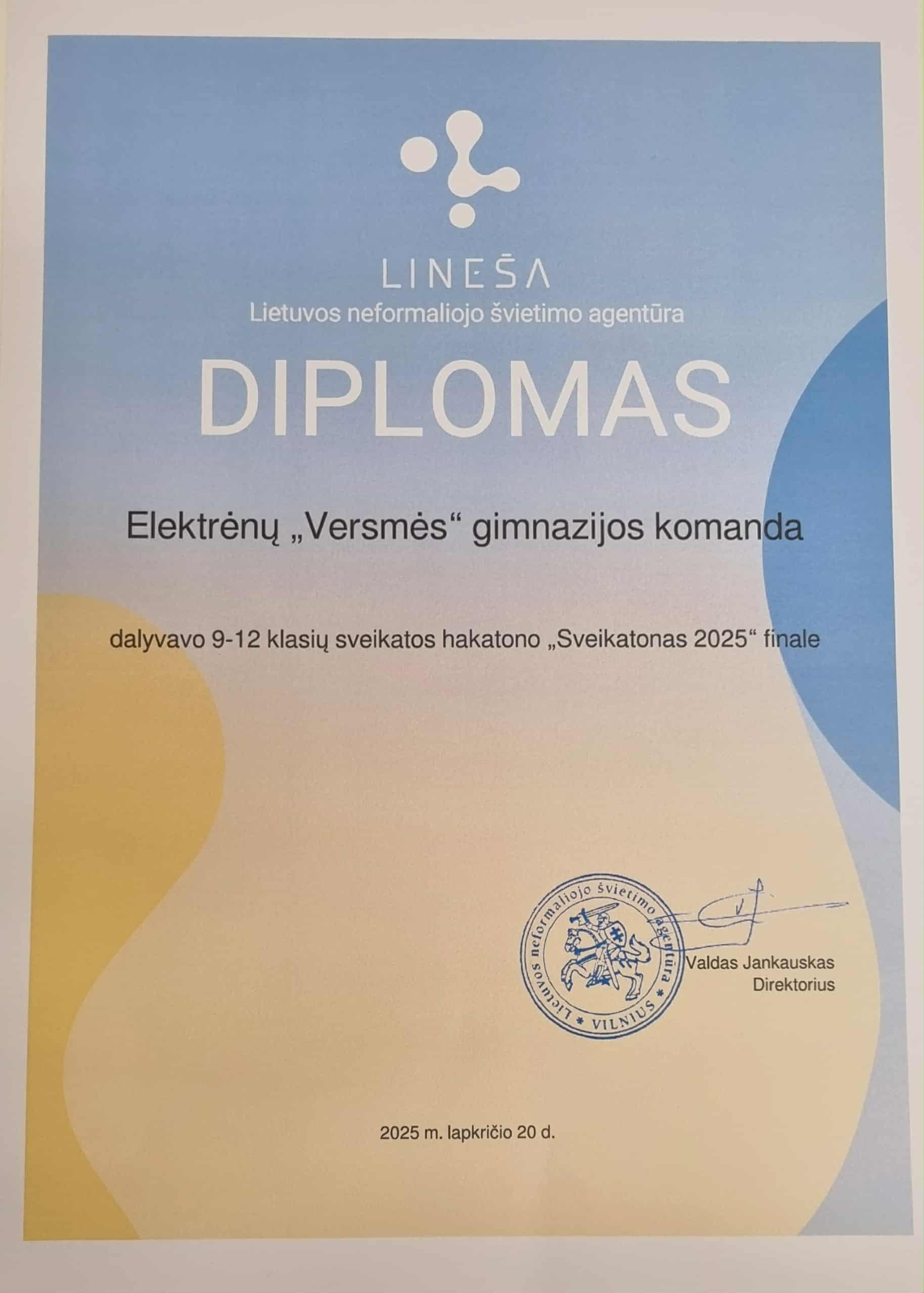 Elektrėnų ,, Versmės “ gimnazijai - Hakatonas tapo puikia proga susipažinti su naujais žmonėmis. Čia sutikome bendraminčių, kurie, kaip ir mes, tiki, kad sveikatos stiprinimas gali būti modernus, interaktyvus ir patrauklus. Praplėtėme ryšių ratą, pamatėme kitų komandų darbus ir įsitikinome, kiek daug idėjų gali gimti, kai jauni žmonės įgalinami veikti.