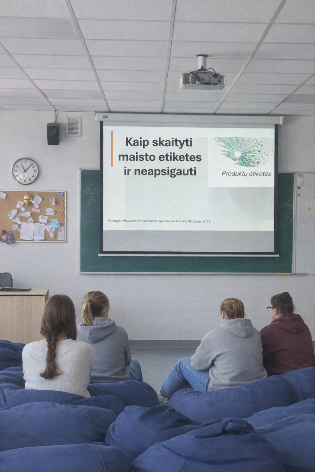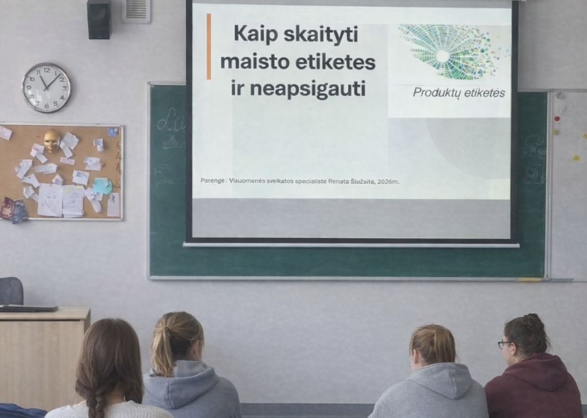 Elektrėnų „Versmės“ gimnazijoje vyko pamoka tema „Kaip skaityti maisto etiketes ir neapsigauti?“, kurią vedė visuomenės sveikatos specialistė Renata Šliužaitė. Pamoka integruota į gyvenimo įgūdžių pamoką ir vyko su mokytoja Silvija Tamkevičiene.