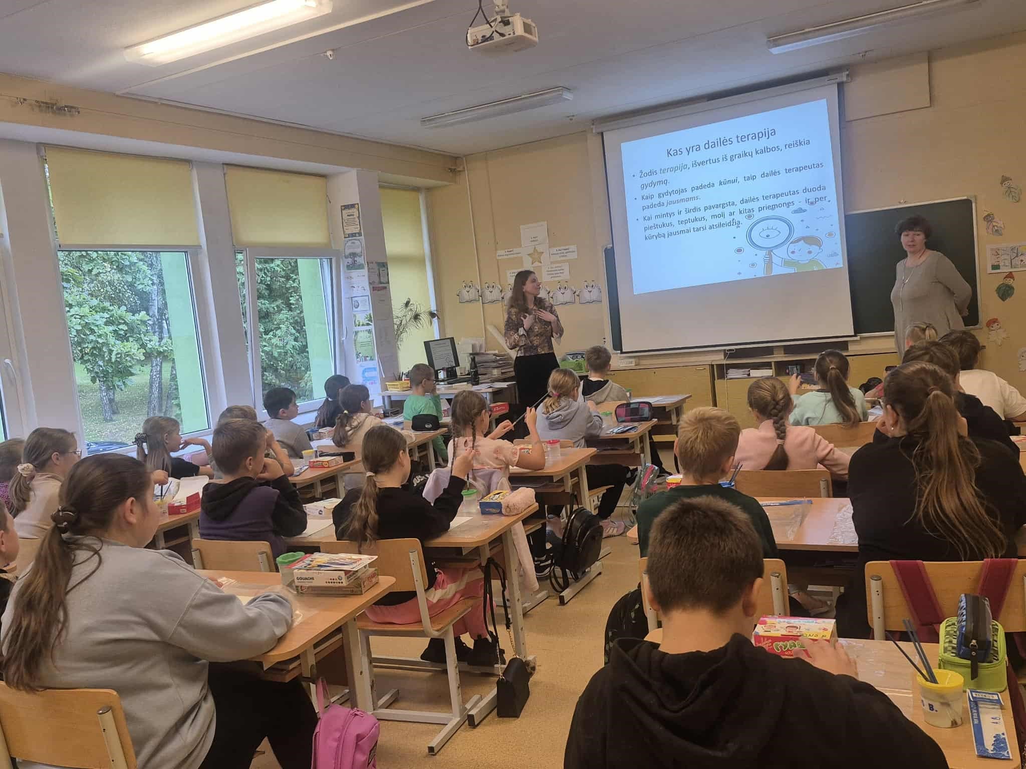 Elektrėnų pradinėje mokykloje rugsėjo 30 dieną vyko renginys „Sveikatos profesijos“, kurį organizavo visuomenės sveikatos specialistė S. Kazakevičienė ir karjeros specialistė R. Rakauskaitė. Renginys skirtas mokiniams susipažinti su sveikatos priežiūros, bei kitomis su žmogaus gerove susijusiomis profesijomis. Ketvirtų klasių mokiniai turėjo galimybę susitikti su įvairių sričių specialistais, išgirsti jų patirtis, praktiškai išbandyti veiklas. Dalyviai aplankė Elektrėnų visuomenės sveikatos biurą, kuriame buvo supažindinti su visuomenės sveikatos specialisto, psichologo, mediko profesijomis. Specialistai pristatė savo veiklą, akcentavo sveikos gyvensenos, ligų prevencijos ir asmens sveikatos priežiūros svarbą. Elektrėnų pradinės mokyklos sporto salėje vyko pažintis su vaikų ir suaugusiųjų jogos trenerio profesija. Mokiniai sužinojo apie jogos naudą fizinei ir psichinei sveikatai ir turėjo galimybę išbandyti paprastas praktikas. Renginio dalyviai susipažino su dailės terapeuto profesija. Naudodami guašo, akrilinius dažus, teptukus, piešimo popierių, atliko kūrybines užduotis. Užsiėmimo metu meno terapijos pagalba mokiniai išreiškė įvairias emocijas taip stiprindami savo psichologinę gerovę. Nuoširdžiai dėkojame Elektrėnų visuomenės sveikatos biuro specialistams, jogos trenerei ir dailės terapeutėms už skirtą laiką, žinias, praktinius užsiėmimus. Jūsų profesionalumas, nuoširdumas ir noras dalintis patirtimi suteikė mokiniams vertingų žinių, įkvėpė rūpintis savo sveikata ir paskatino domėtis ateities profesijų pasirinkimais. Ačiū už bendradarbiavimą ir prasmingą indėlį į jaunimo ugdymą!