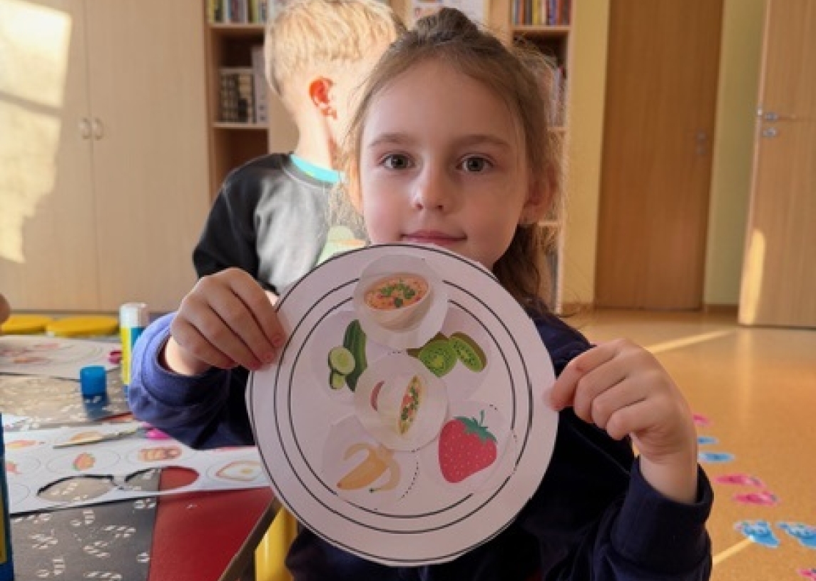 Vėliau vaikai dalyvavo praktinėje veikloje: rūšiavo maisto produktų paveikslėlius į „sveikų“ ir „nesveikų“ maisto grupes, mokėsi atpažinti vaisius ir daržoves.Ypatingas dėmesys buvo skiriamas vandens svarbai ir valgymo režimui.
