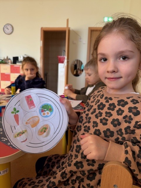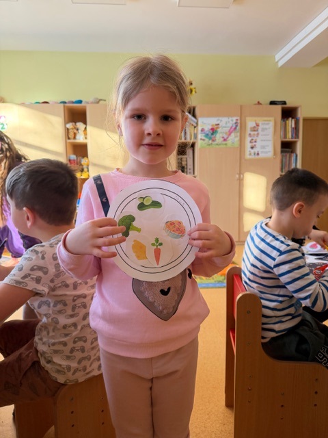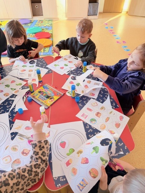 Pamokėlės pabaigoje vaikai atliko kūrybinę užduotį – spalvino „sveikus maisto produktus“, klijavo savo „sveikos mitybos lėkštę“.Veikla skatino vaikų smalsumą, saviraišką ir teigiamą požiūrį į sveiką mitybą.