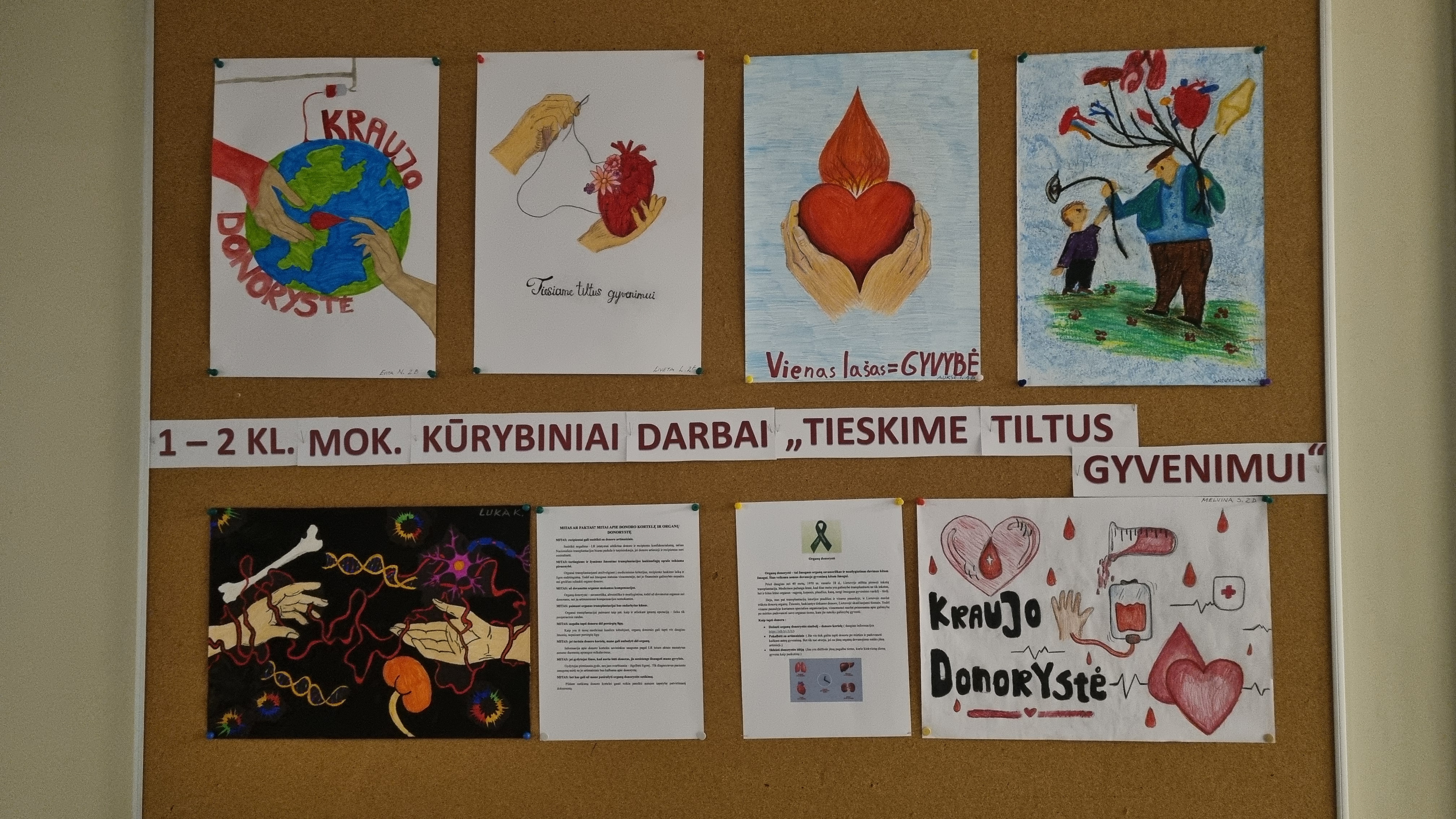 Minint vasarį – „Sveikatos mėnesį“, Elektrėnų „Versmės“ gimnazijoje surengta vaikų piešinių paroda, įkvėpta Nacionalinio transplantacijos biuro prie Sveikatos apsaugos ministerijos organizuojamo konkurso „Tieskime tiltus gyvenimui“. Paroda tapo jautriu ir prasmingu tiltu tarp meno ir sveikatos temų – mokinių darbuose atsiskleidė gyvybės trapumas, viltis, bendrystė ir dovanojimo prasmė. Spalvose ir simboliuose – žali kaspinai, šviesos tiltai, iš rankų į rankas perduodama širdis – vaikai perteikė donorystės idėją kaip kilnią galimybę padovanoti gyvenimą kitam.
