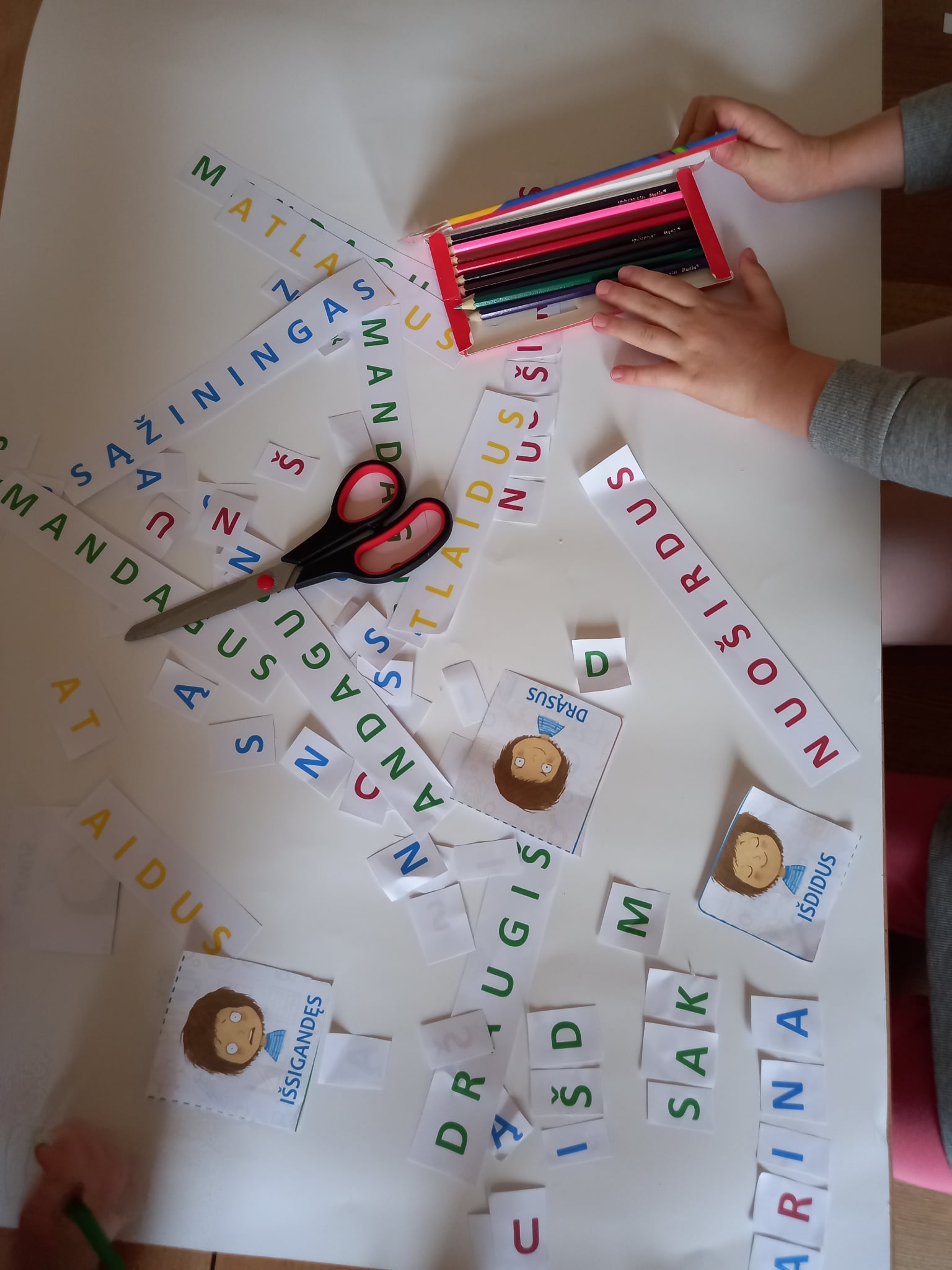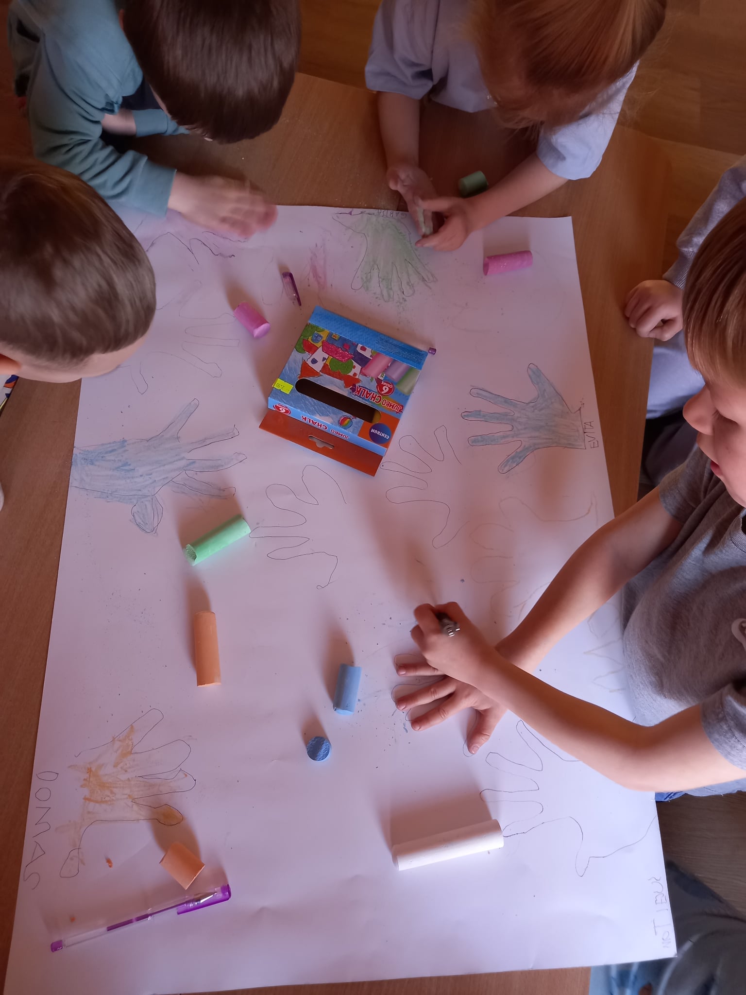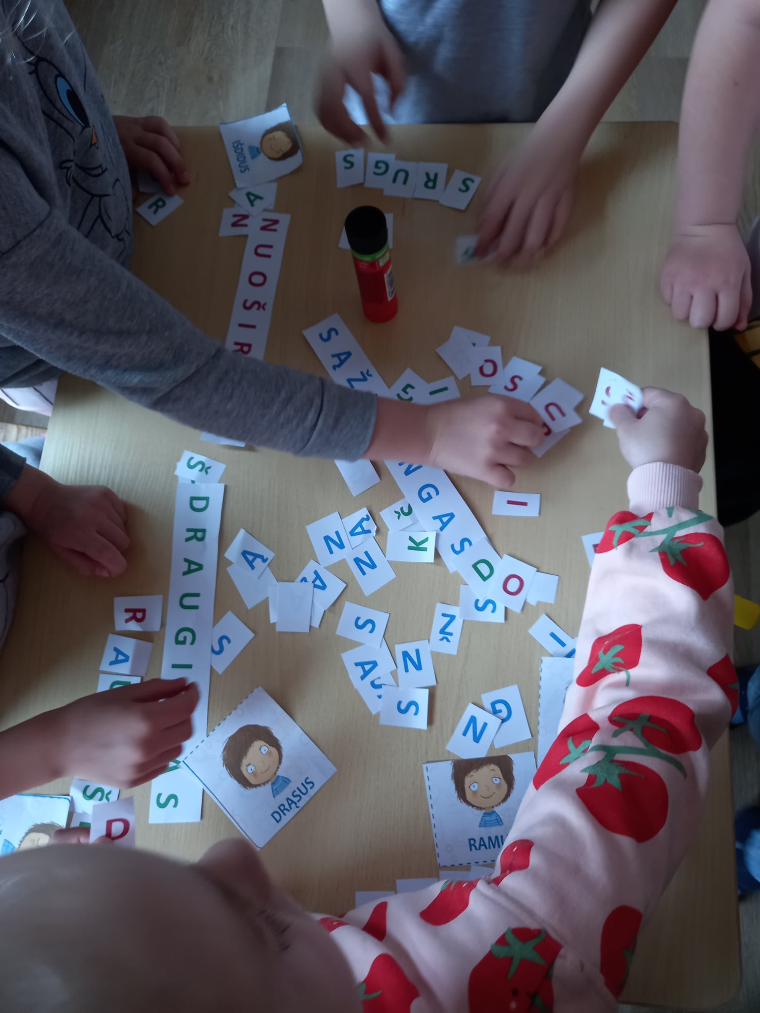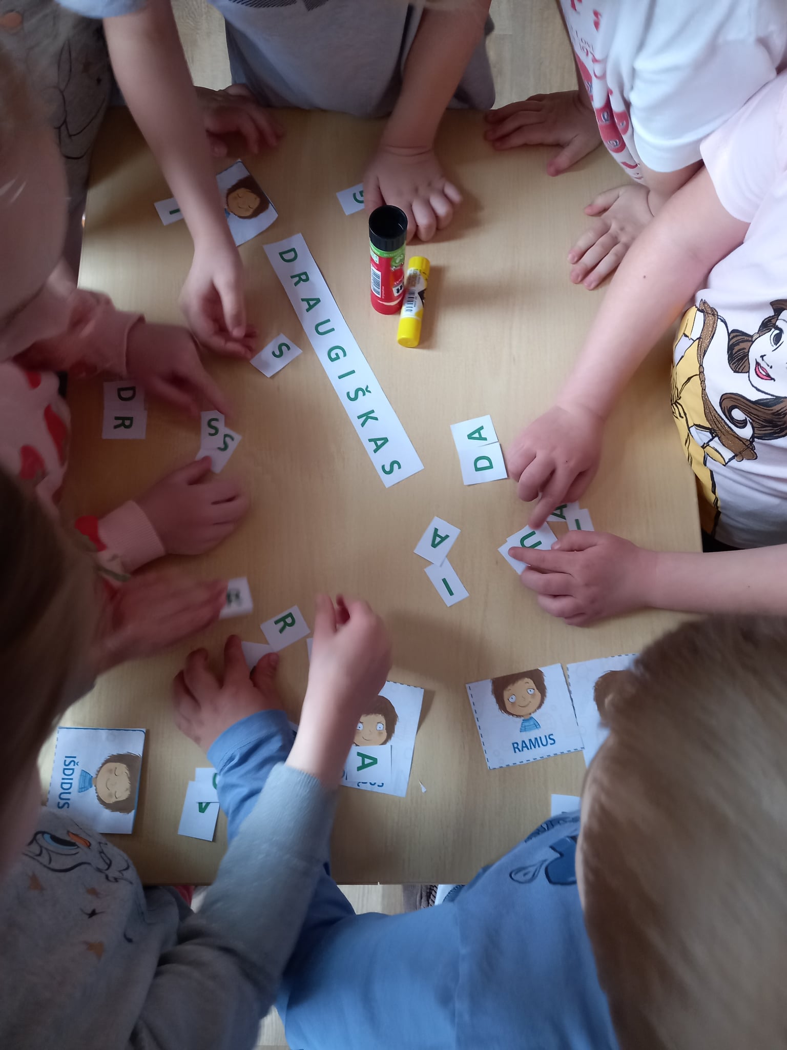 Ankstyvas bendravimo įgūdžių – dalinimosi, išklausymo – lavinimas padeda vaikui emociškai stiprėti. Ugdytiniai kartu atliko kūrybinį darbelį iš savo rankyčių antspaudų ir užrašė savo vardus. Taip pat sudėliojo paveikslėlius, surinko išsklaidytas raides ir jas sujungė į žodį. „Emocijų šviesofore“ pažymėjo ir apibūdino savo nusiteikimą, jausmus, nuotaikas. Kam buvo liūdna, draugas paguodė apkabindamas. Veikla „Pripūsk šypseną“ vaikams teikė daug džiaugsmo ir teigiamų emocijų – vaikai pripūtė įvairiaspalvius balionus ir su jais žaidė. Ugdytinių socialinių įgūdžių ugdymas per kūrybines veiklas moko draugiškai bendrauti ir bendradarbiauti.
