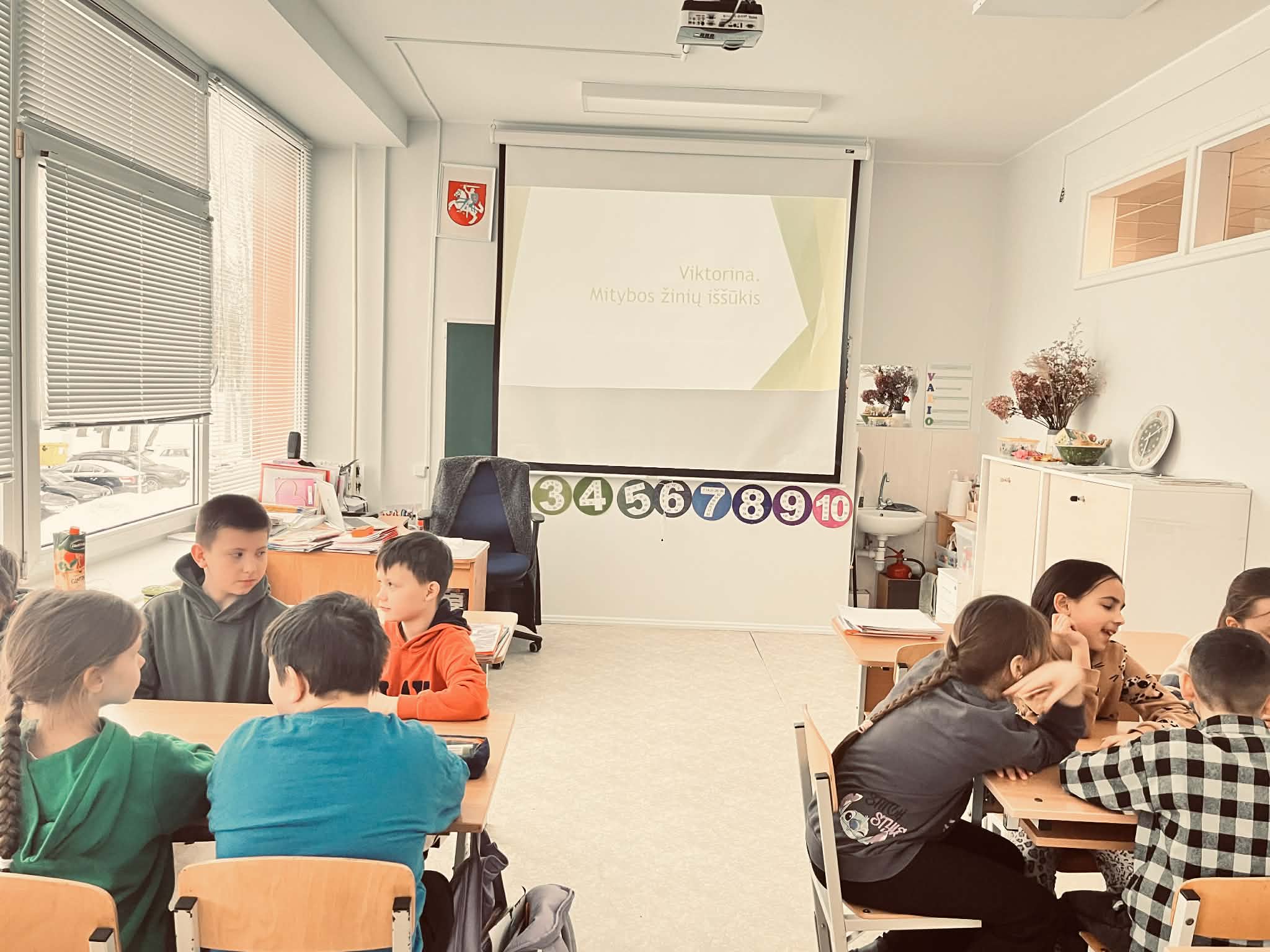 1–4 klasių mokiniai dalyvavo viktorinoje „Mitybos žinių iššūkis“, kurios metu gilino žinias apie sveiką mitybą ir sveiką gyvenseną. Vaikai atliko įvairias praktines užduotis: prisiminė mitybos piramidę ir į ją įrašė skirtingoms maisto grupėms priklausančius produktus. Ši veikla padėjo suprasti, kokie maisto produktai yra naudingi augančiam organizmui ir kaip svarbu maitintis subalansuotai.