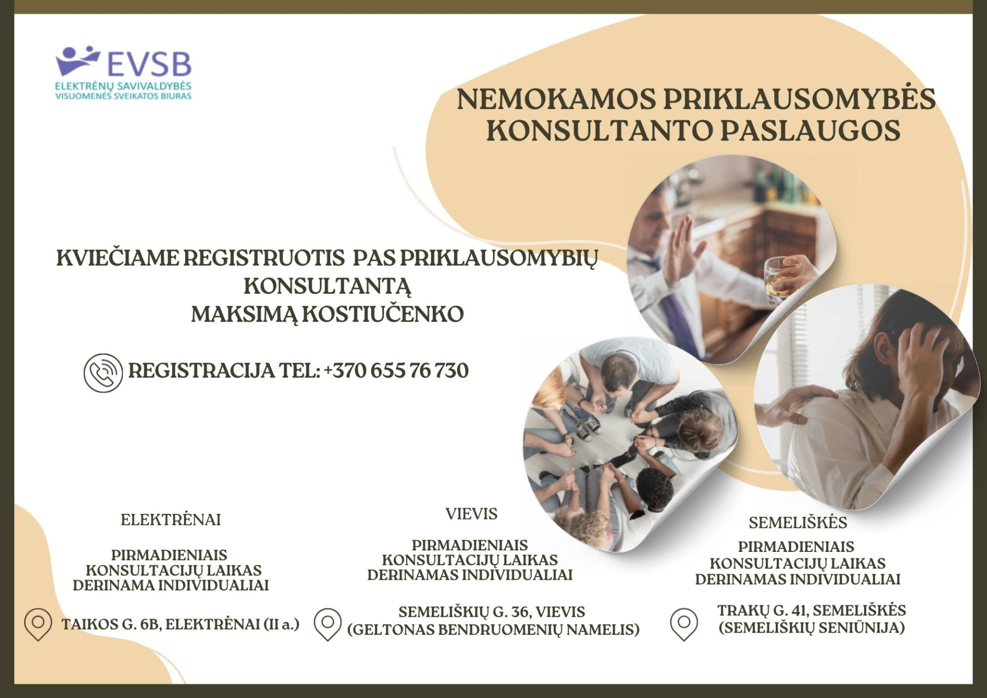 Elektrėnų savivaldybės visuomenės sveikatos biuras organizuoja priklausomybės konsultavimo paslaugas